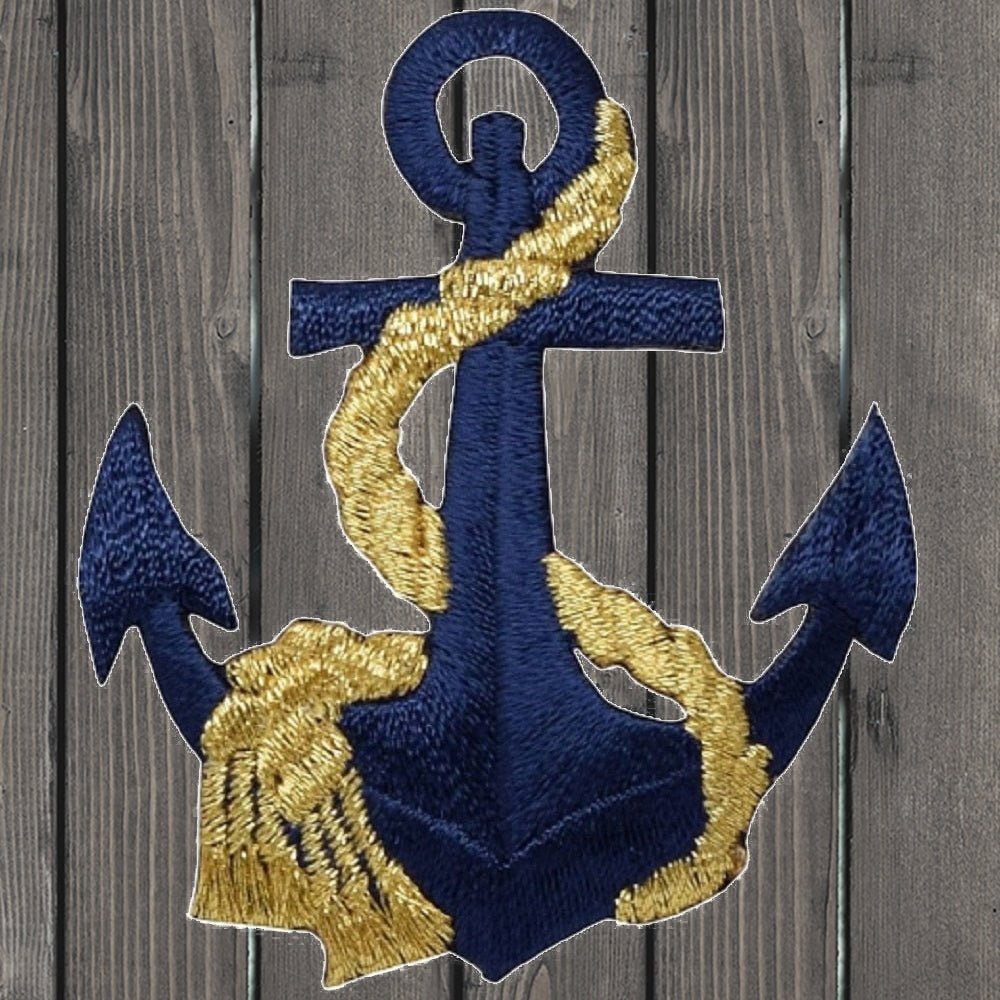 Anchor & Rope Applique Patch - Metallic Gold/Navy Nautical Badge 2.5" (Iron on)